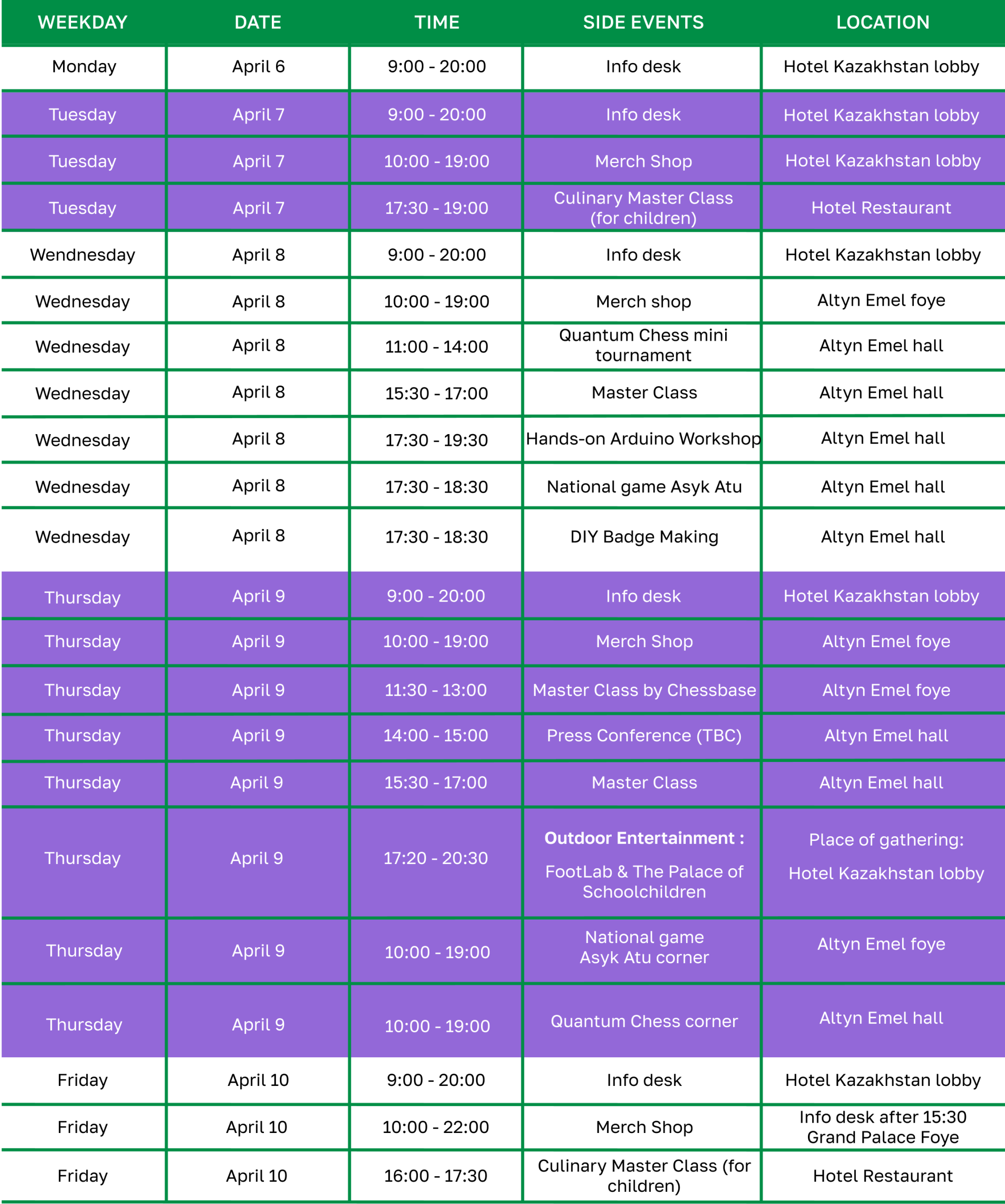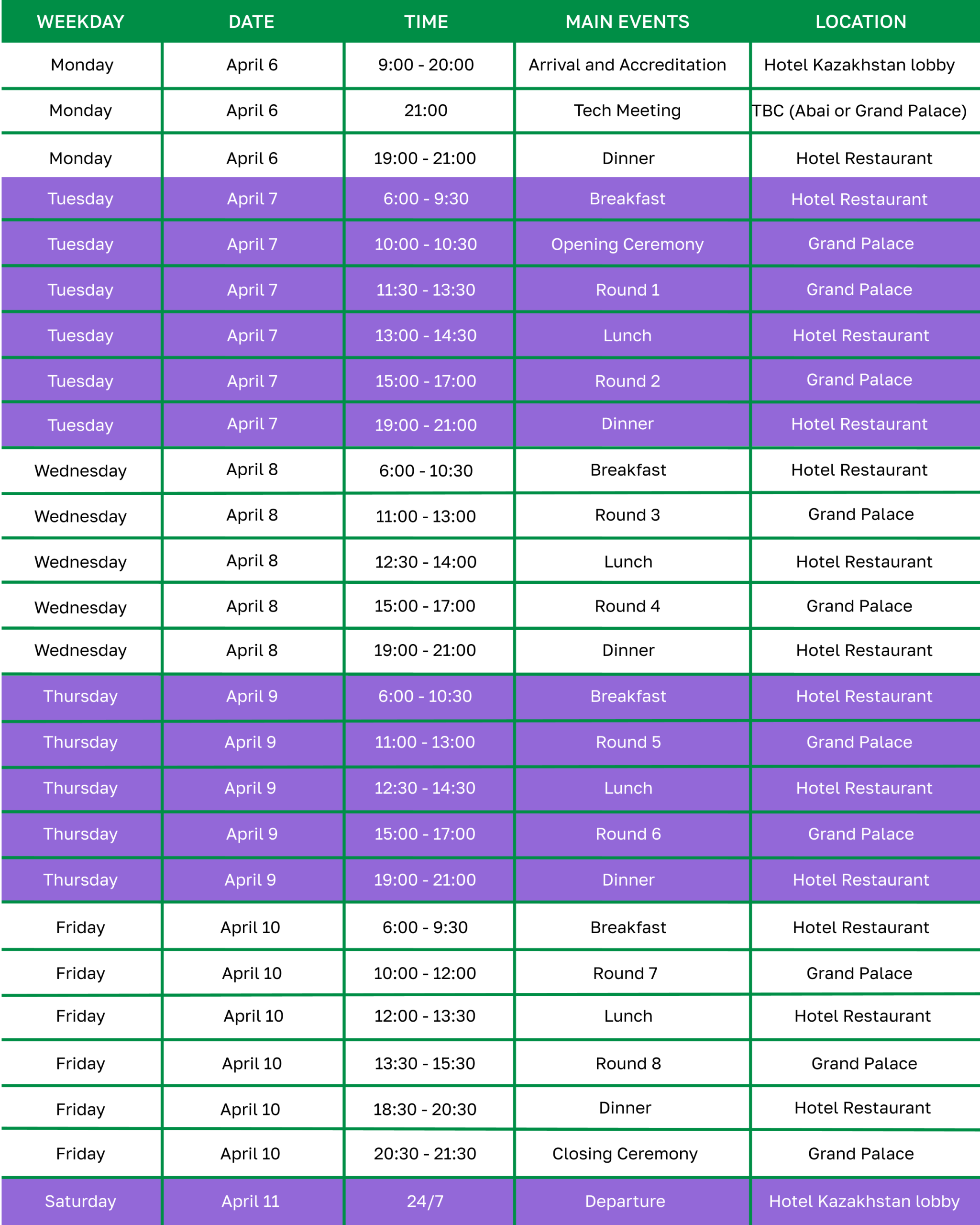Here you will find the tournament schedule, venue information, useful contacts, and a short guide to help you enjoy your stay in Almaty